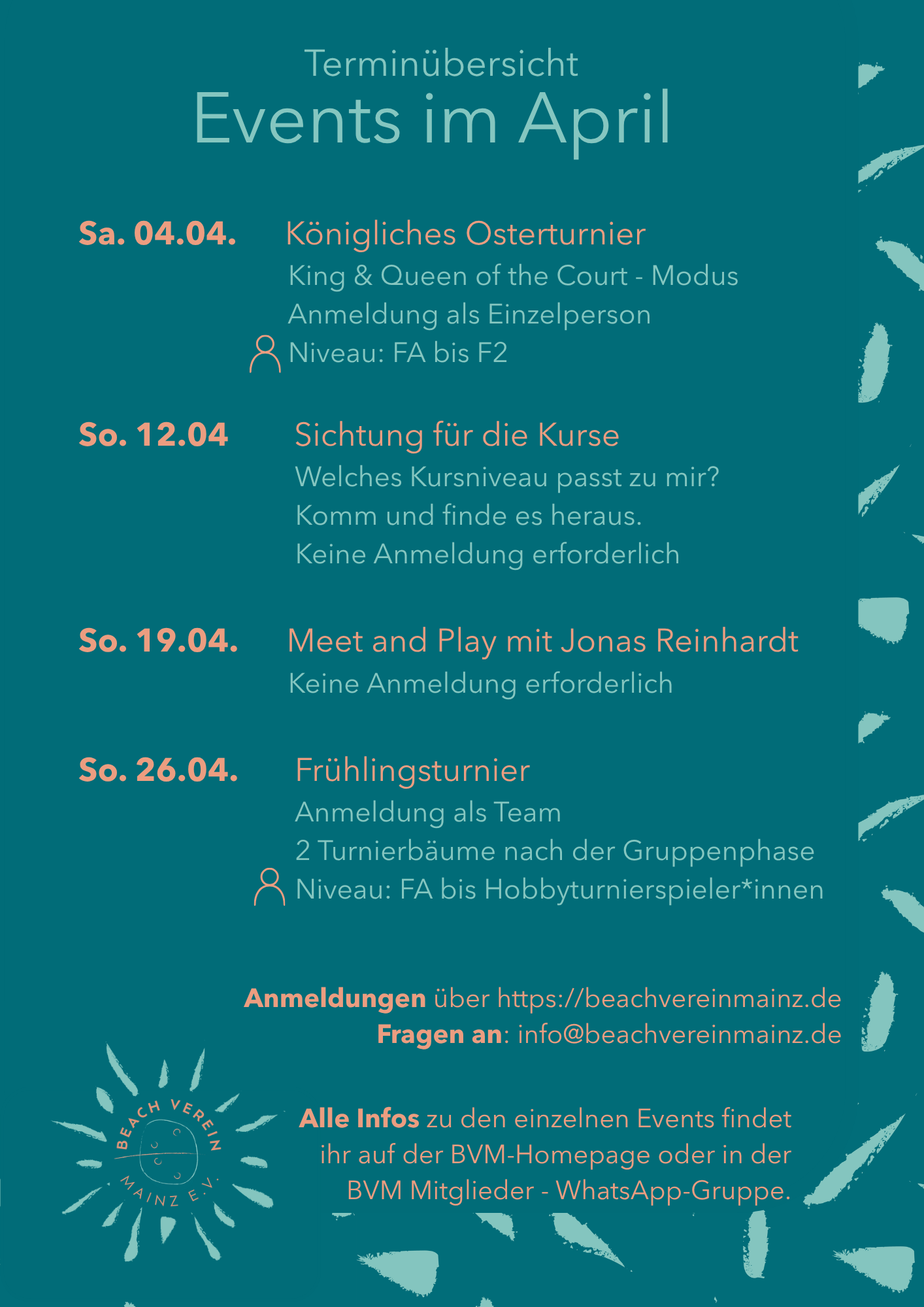 Hier bekommt ihr eine kurze Übersicht über alle anstehenden Termine im April und Mai! (klickt auf die Bilder)